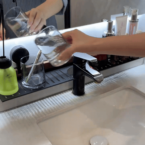 Unser GlanzDock besteht aus hochwertigen, wasserfesten Materialien und steht absolut sicher auf deinem Waschbecken. Kein Wackeln, kein Verrutschen.